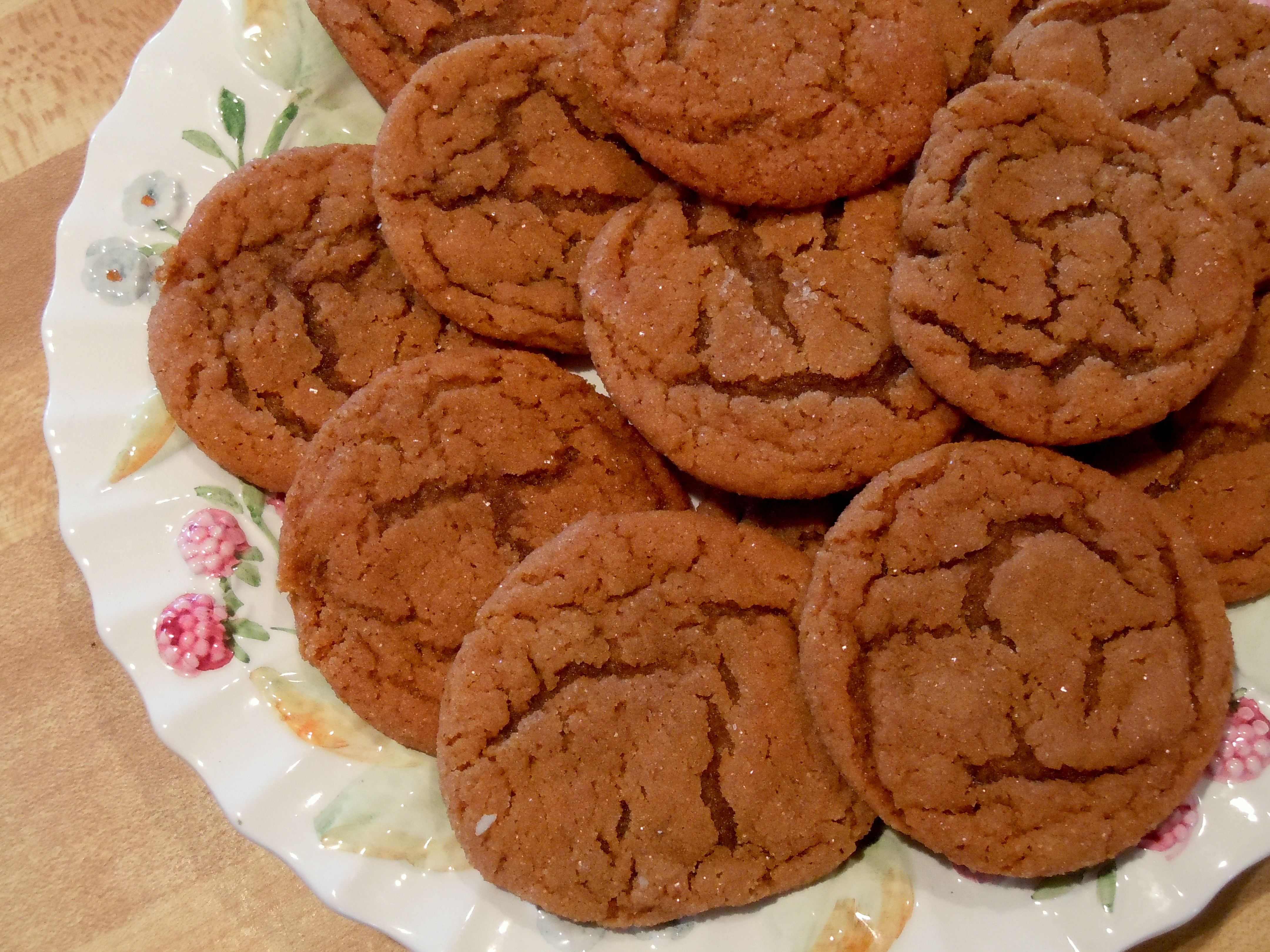 That time I made them for the piano recital? I’d forgotten that I was supposed to bring treats until an hour before the recital. Oops! I made these because A. they’re my favorite cookies, hands down; B. the dough doesn’t need refrigerating; and C. I had the ingredients—or so I thought. My mother always made molasses cookies with shortening. I had exactly 1/3 cup of Crisco in the house, not even enough for a half-batch. I filled the gap with softened butter. Amazing! They were even better.