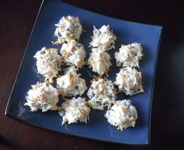 Fold the cooled, golden coconut into the beaten whites, add a few chocolate chips, and drop by spoonfuls onto a cookie sheet. That’s it. No piping bags, no resting the batter, no rotating of pans.