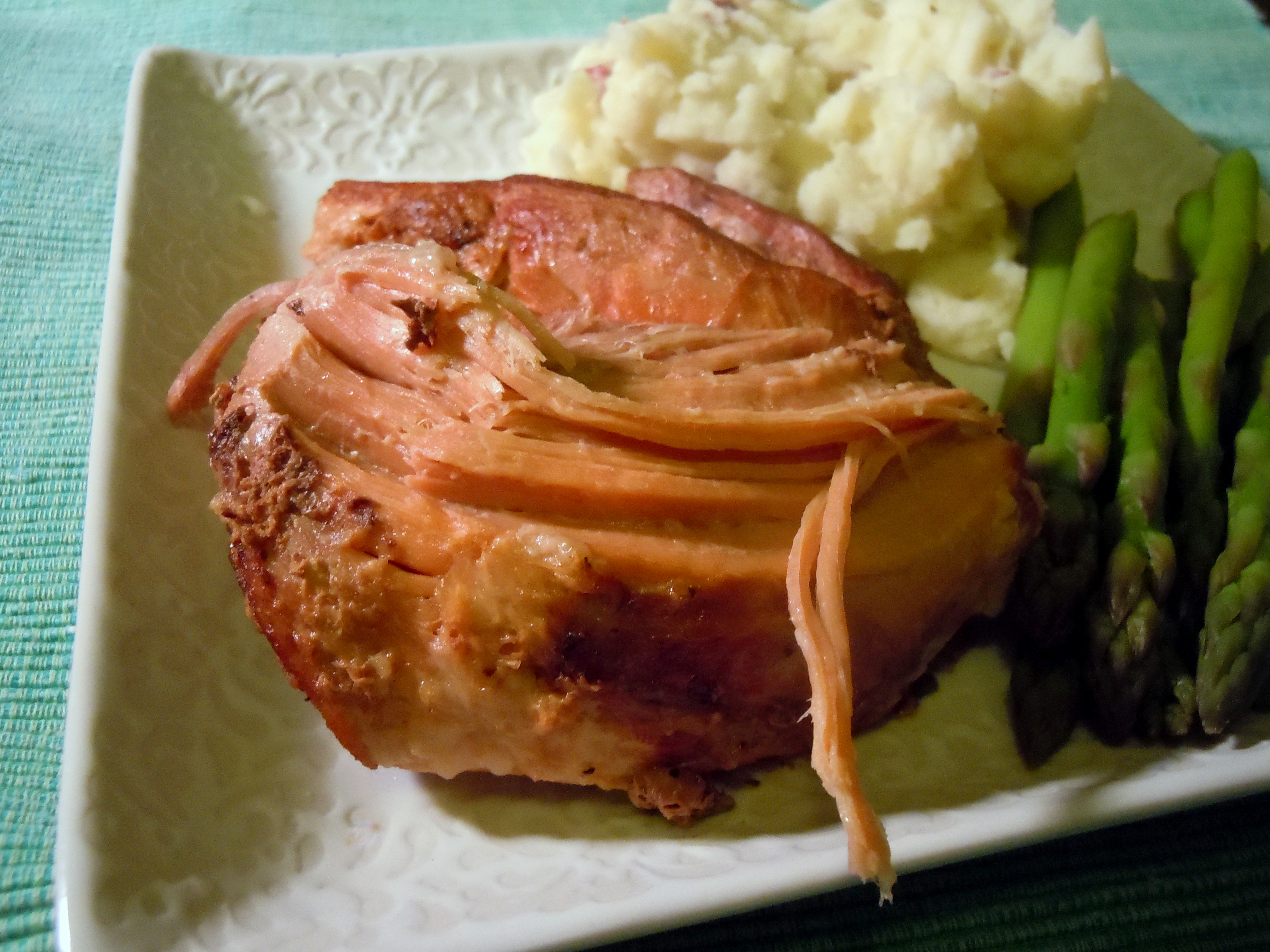 The latest entry in the pork sweepstakes was a roast. This lived up to our expectations: it was a fairly lean hunk of meat, bone in, with a layer of fat. And it was huge. I opted for a neutral flavor profile, since we clearly would be eating leftovers for quite some time.