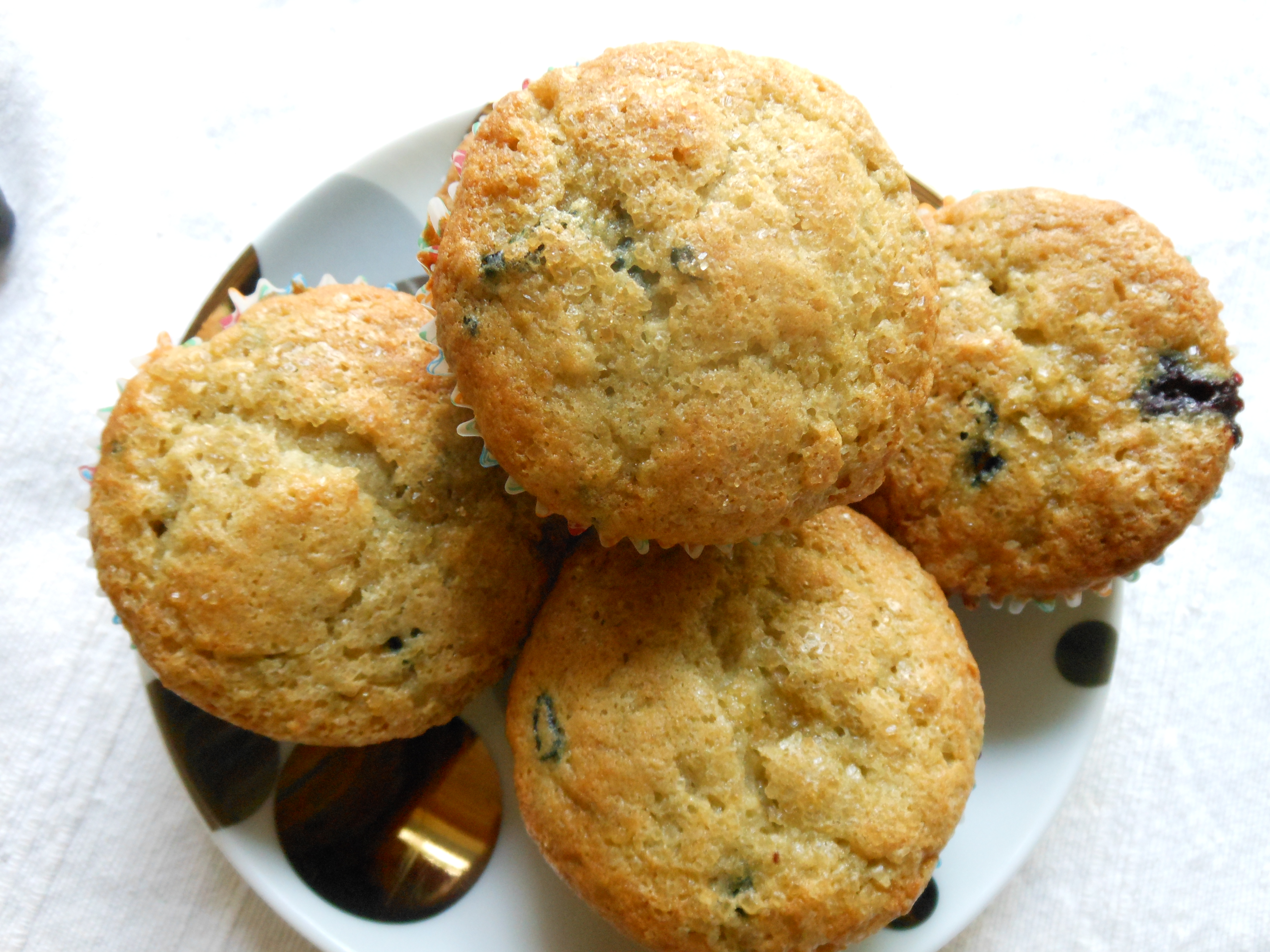 –The riper the bananas, the better the muffins. The skins should have some blackening, and the fruit should be tender and soft (n0t liquid).