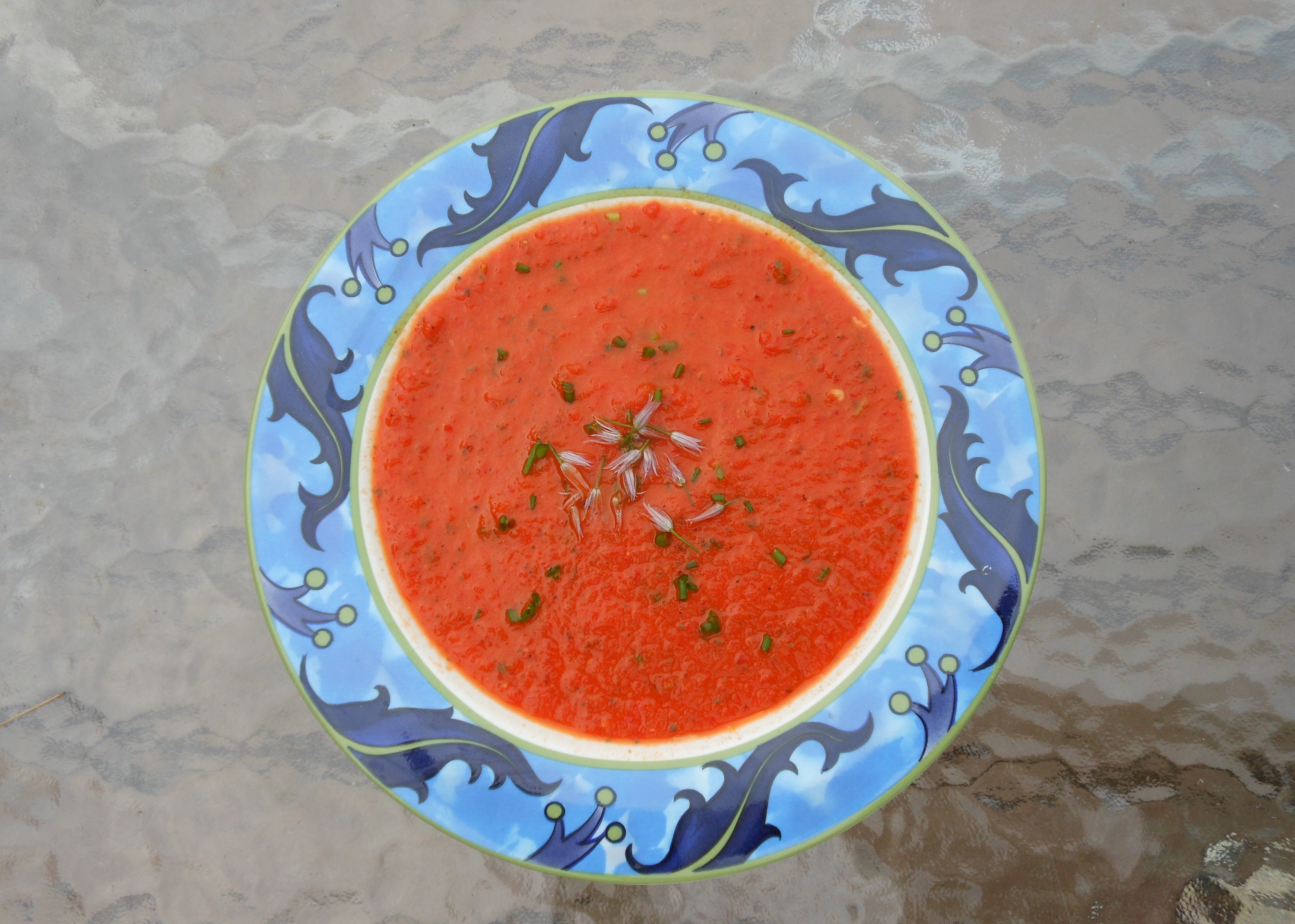 The soup, served hot, is reminiscent of a really good tomato soup, but with a deeper, more complex flavor. Cold, it’s similar to a gazpacho, but smoother both in texture and in taste.